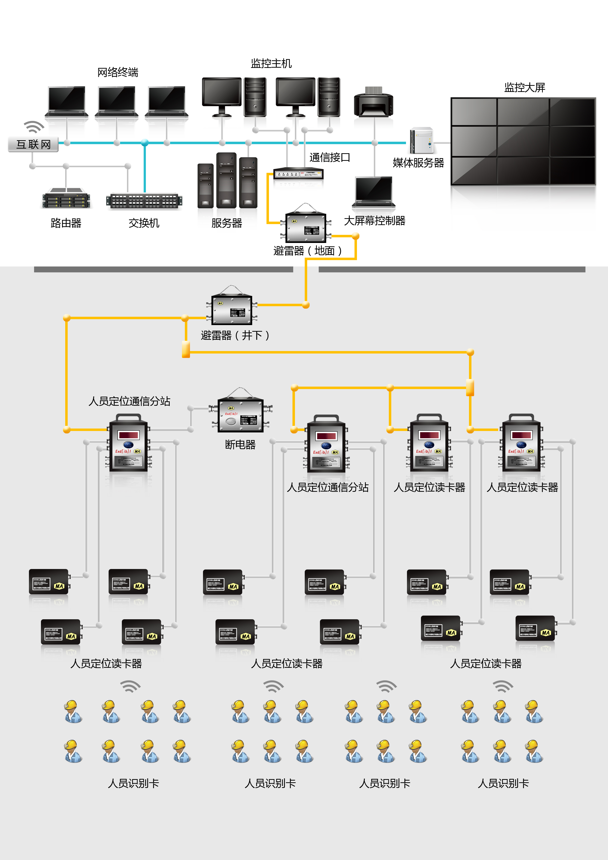 本系統(tǒng)的計算機監(jiān)控通信接口占用系統(tǒng)資源少,響應(yīng)速度快,輸出為本安信號。配備的人員標識卡使用方便,漏報率低。軟件采用容錯、糾錯技術(shù),提高了系統(tǒng)的可靠性。系統(tǒng)功能齊全、人機界面友好、操作方便,具有聲音報警提示功能。系統(tǒng)采用RS485工業(yè)總線或光纖以太環(huán)網(wǎng)傳輸數(shù)據(jù),數(shù)據(jù)傳輸質(zhì)量高。